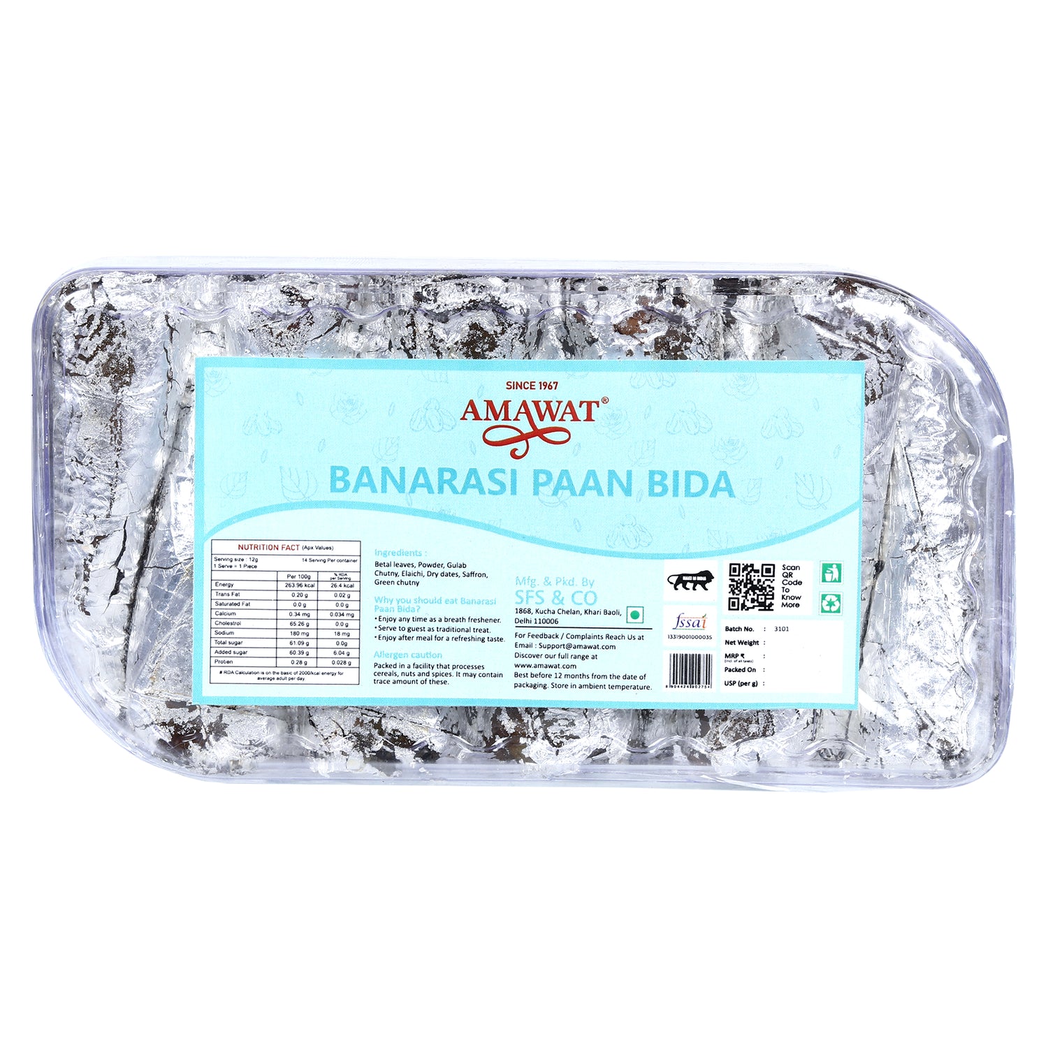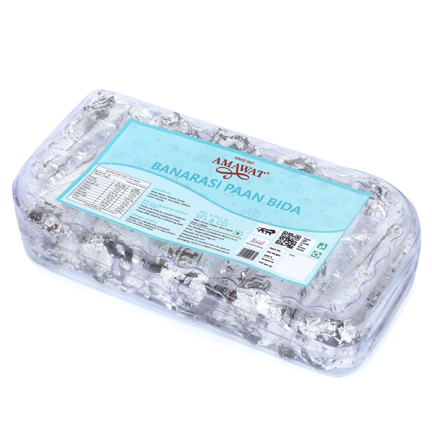 Amawat Banarasi Paan Bida is a rich and aromatic treat inspired by India’s timeless paan tradition. Each silver-wrapped paan roll is handcrafted with a perfect blend of betel leaves, gulkand, dry fruits, and aromatic spices to deliver a mouth-refreshing and digestive-friendly experience.