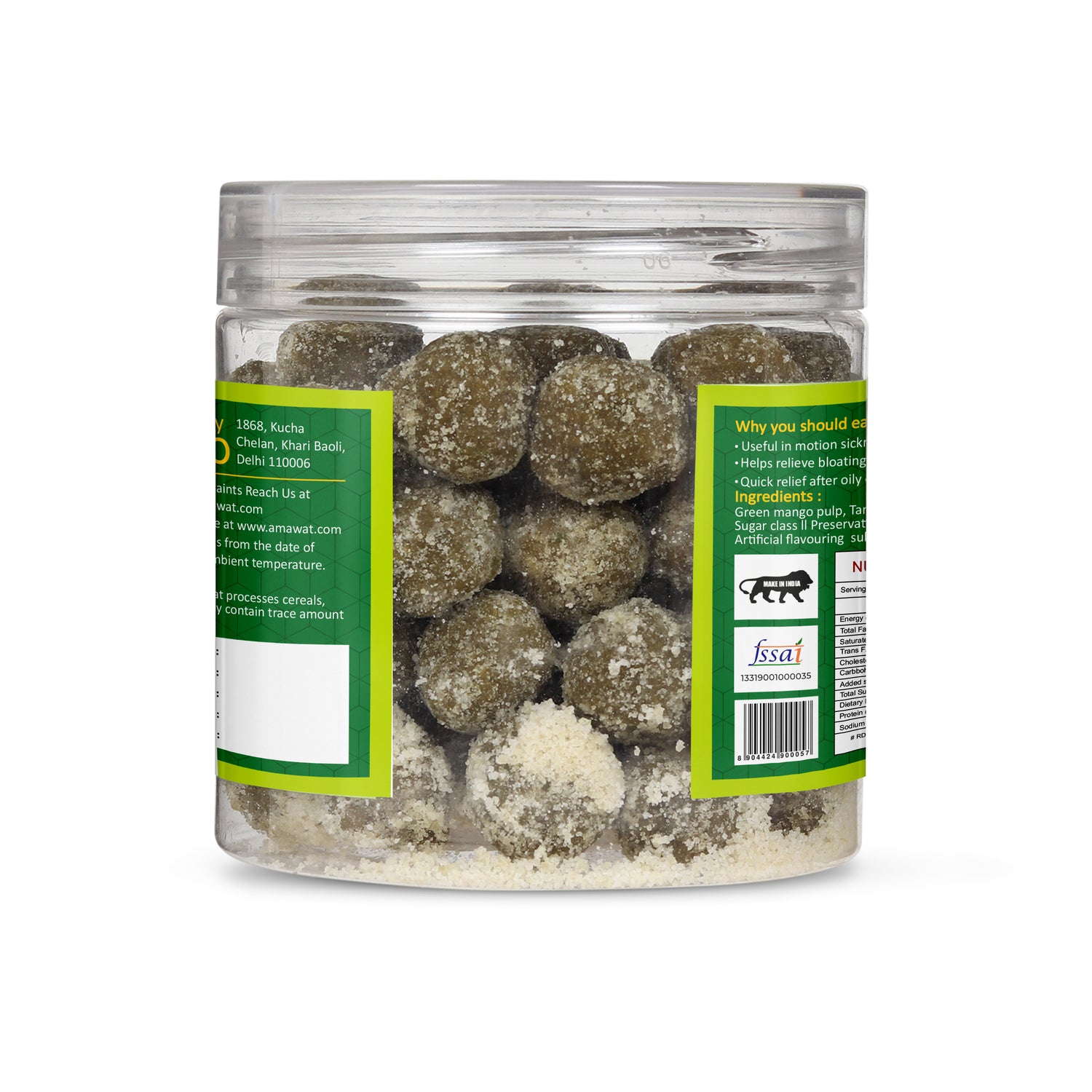 Introducing Amawat's Kaccha Aam Kerry - Digestive Kacha Aam Candy Churan, a delightful blend of tangy, sweet, and fresh flavors that transport you back to the carefree days of childhood with every bite. Immerse yourself in the burst of nostalgia encapsulated in this unique treat. Crafted with precision, our Masala Kaccha Aam Kerry is prepared, processed, and packed in a highly hygienic environment to ensure superior quality and an authentic flavor profile. We take pride in delivering a product that not only tantalizes your taste buds but also aligns with our commitment to maintaining the highest hygiene standards.