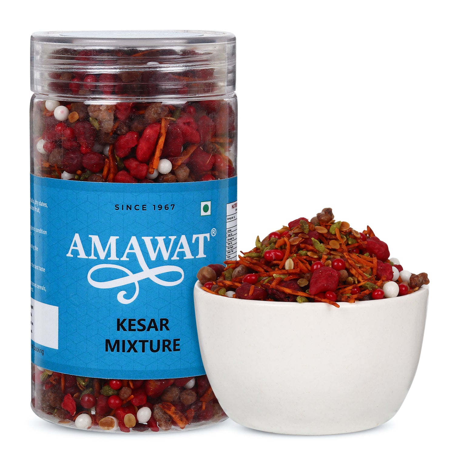 Our Kesar Mixture is meticulously prepared, processed, and packed in hygienic conditions to guarantee superior quality and an authentic flavor profile. Carefully selected ingredients create a delightful blend that elevates your post-meal routine. The infusion of sugar, aniseed, dry dates, vegetable oil, coriander seeds, menthol, roasted coriander seeds, betel nuts, and crystalized fruit adds a touch of sophistication, making this mukhwas a genuinely luxurious indulgence. Beyond its delightful taste, Amawat Kesar Mixture is designed to promote digestive health. Activating the secretion of digestive juices aids in strengthening the digestive process, leaving you feeling refreshed and invigorated after every meal. The thoughtful combination of ingredients contributes not only to the taste but also to the holistic well-being of the consumer.