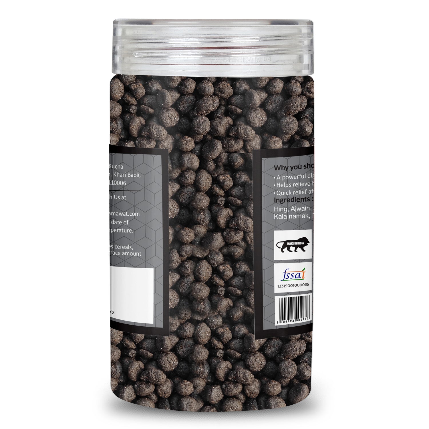 Ingredients : Hing, Ajwain, Amla, Jeera, Kaali mirch, Pippal, Kala namak, Nausadar, Citric acid, Lodised salt.