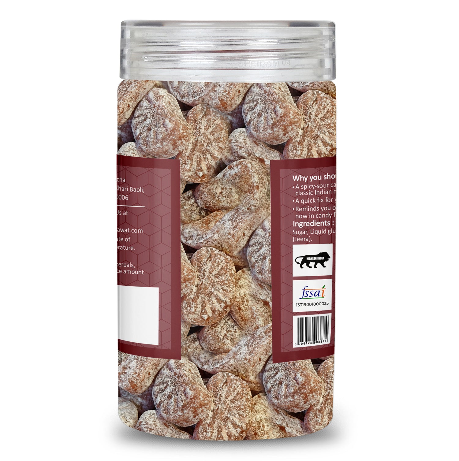 Ingredients: Sugar, Cumin seed powder, Salt, Black salt, Acidity regulator (E330), and Artificial flavouring substances (Cumin).